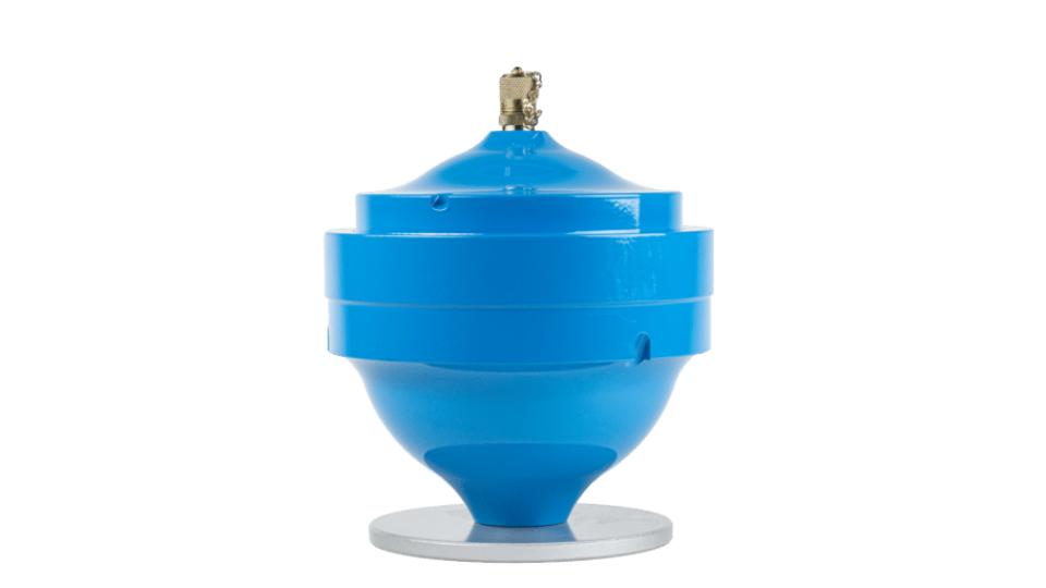 Les accumulateurs sphériques LEDUC (AS-AC) sont constitués de deux calottes hémisphériques assemblées par vissage et serrant une membrane. Celle-ci porte une butée métallique qui vient obturer l’orifice d’utilisation lorsque la vidange totale de fluide est réalisée : tout risque de détérioration de la membrane est ainsi évité. L’orifice côté gaz est équipé d’une valve de gonflage permettant d’intervenir sur la pression d’azote dans l’accumulateur.